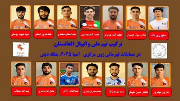 د طالبانو تر واک لاندې د افغانستان د والیبال ملي فدراسیون د اسیا د مرکزي زون اتلولۍ سیالیو لپاره د ملي لوبډلې ۱۴ کسیز نوملړ اعلان کړی دی.