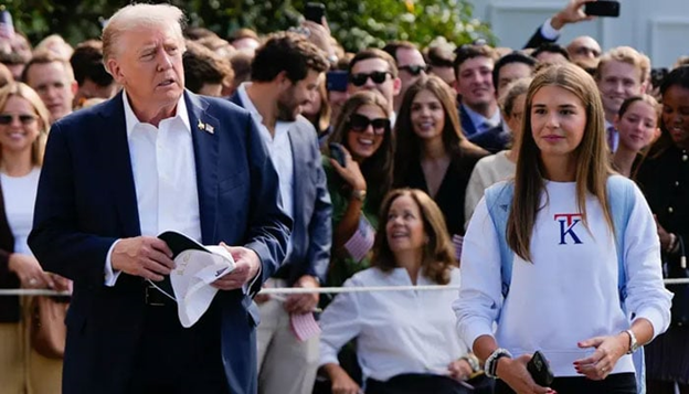 ټرمپ د سپینې ماڼۍ بهر د رسنیو سره د خبرو پر مهال د خپل زوی ډان جونیئر د لور د لباس برنډ معرفي کړ او هغه سپین شرټ لباس چې ۱۳۰ ډالره قیمت لري، په تن کړی و.